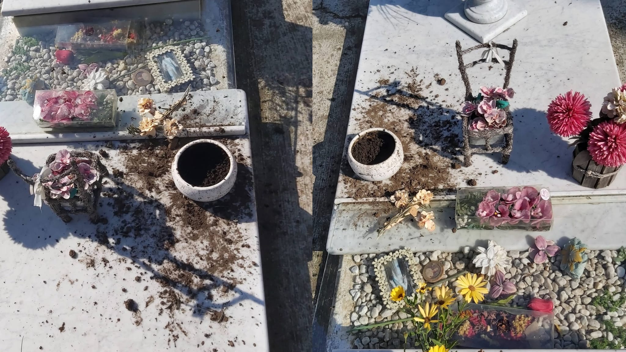 Ignoti, si sono recati presso una tomba e per preleva una pianta d’ulivo, hanno provocato danni agli oggetti e vaso che erano posti sulla stessa, causando anche caos sparpagliando la terra ovunque. Un atto non solo grave per il furto, ma perché manca di rispetto sia alle persone che orami non ci sono più che ai loro parenti.