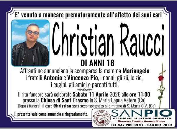A piangere la sua scomparsa la madre Mariangela, i fratelli Antonio e Vincenzo, i cugini e i parenti. I suoi funerali saranno celebrati alle ore 11 di sabato nella Chiesa di Sant’Erasmo a Santa Maria Capua Vetere.