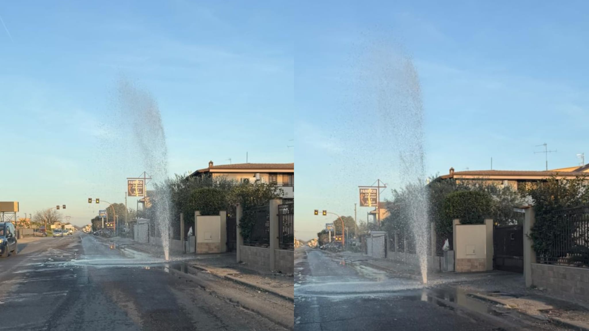 Più di una settimana fa, sempre nello stesso punto, ci fu una rottura idrica con conseguente uscita di acqua, e questa mattina, la stessa situazione si è di nuovo verificata.