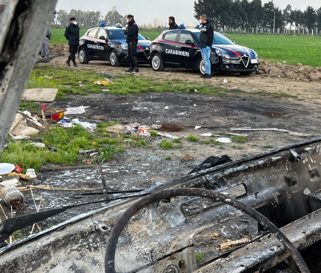 Il giovane ha 23 anni ed abita nell’insediamento. In mano ancora l’accendigas utilizzato per appiccare l’incendio. I carabinieri lo bloccano e lo arrestano. A prendere fuoco carcasse di auto, imballaggi contenenti residui di pittura e olii, diversa immondizia.