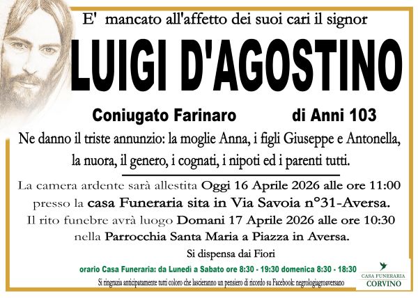 I suoi funerali saranno celebrati domani alle ore 10:30 presso la Parrocchia Santa Maria a Piazza in Aversa.