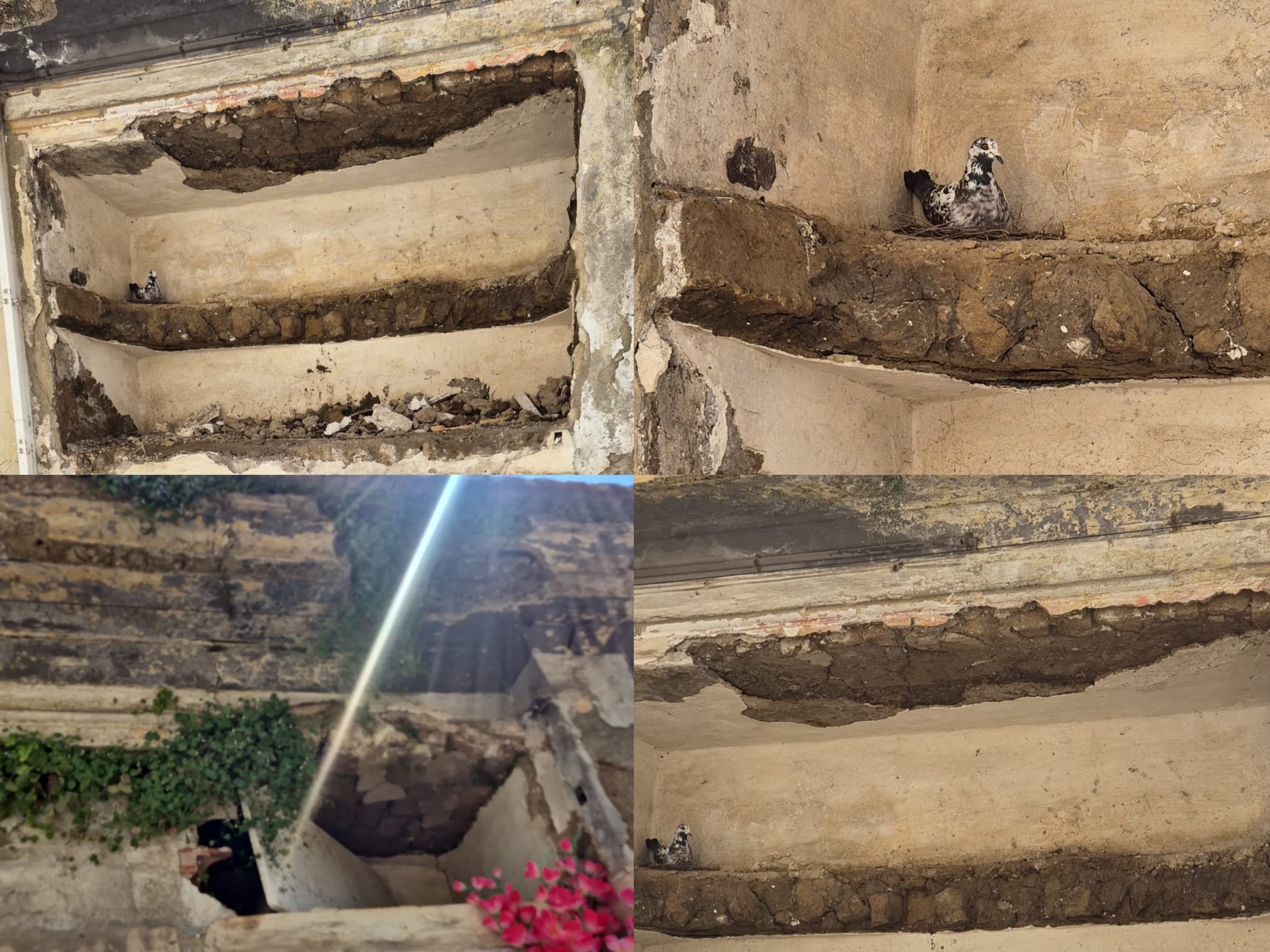 A distanza di oltre un mese, la situazione non è stata ancora risolta. Sono state tolte le macerie e pulito i loculi, ma ancora non sono stati sistemati. Negli stessi, che ora sono vuoti e scoperti, dei colombi hanno iniziato a fare anche il nido.