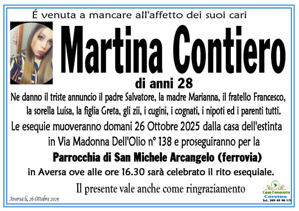 Aversa. Grande dolore per la città di Aversa. Nelle scorse ore una delle sue figlie si è purtroppo spenta prematuramente. Si chiamava Martina Contiero, aveva solo 28 anni.
