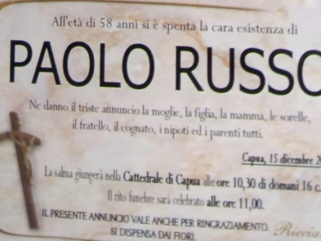 I funerali si terranno domani mattina nella Cattedrale di Capua. Il corteo funebre giungerà alle ore 10.30, mentre la celebrazione religiosa avrà inizio alle ore 11.00. Un momento di raccoglimento e preghiera durante il quale l’intera comunità potrà salutare per l’ultima volta Paolo e manifestare la propria vicinanza alla famiglia Russo.