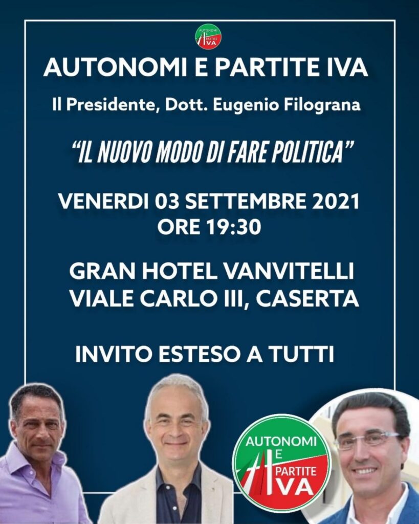 CASERTA. Il presidente nazionale di Autonomi e Partite Iva Eugenio Filograna sarà domani sera, venerdì 3 settembre, a partire…