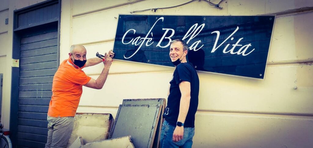 RECALE. Giornata storica a Recale in via Roma. Chiude il Caffè Bella Vita. Nella foto i fratelli Antonio e…