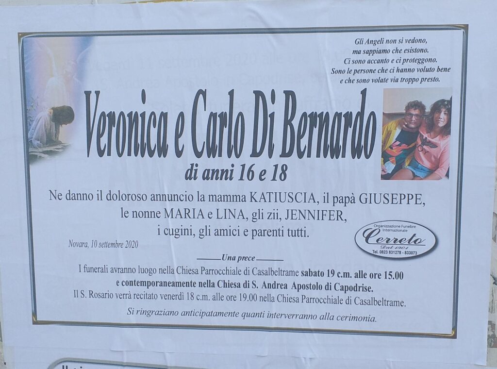 “Gli angeli non si vedono ma esistono”: doppio addio per Veronica e Carlo CAPODRISE. Due angeli. Due comunità…