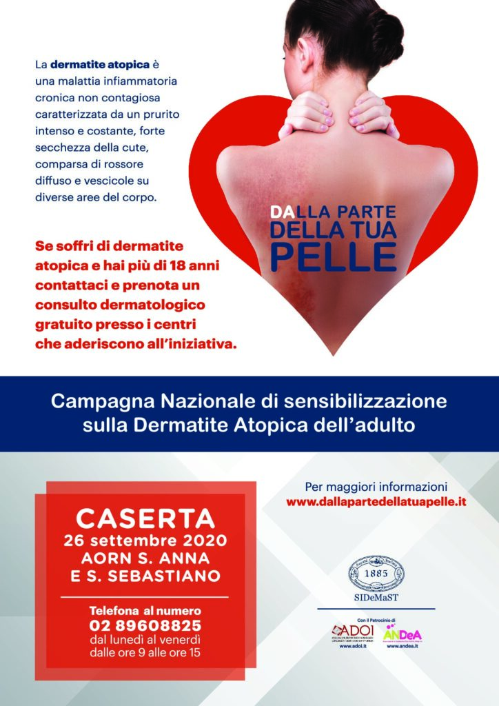 Dermatite atopica dell’adulto: il 26 settembre consulti dermatologici gratuiti a Caserta Caserta. Riparte la Campagna di sensibilizzazione con una giornata…
