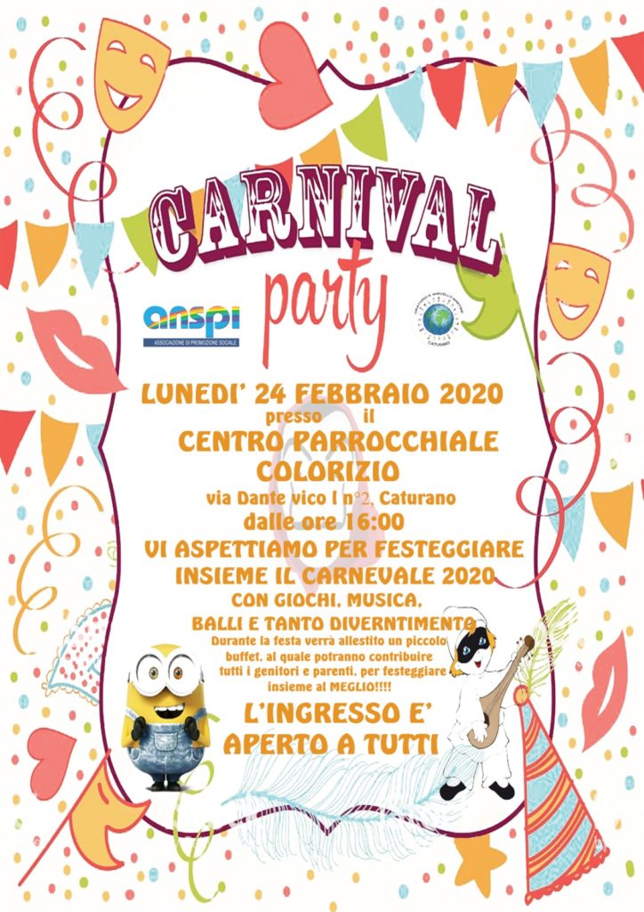 Caturano. Lunedi 24 febbraio al centro colorizio si festeggia il carnevale in maschera. Organizzato all’oratorio San Marcello Martire, un evento…