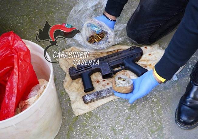 Casapesenna. Era nascosta in un secchio di vernice, all’interno della cantina dell’abitazione di un 56enne di Casapesenna, la pistola mitragliatrice…