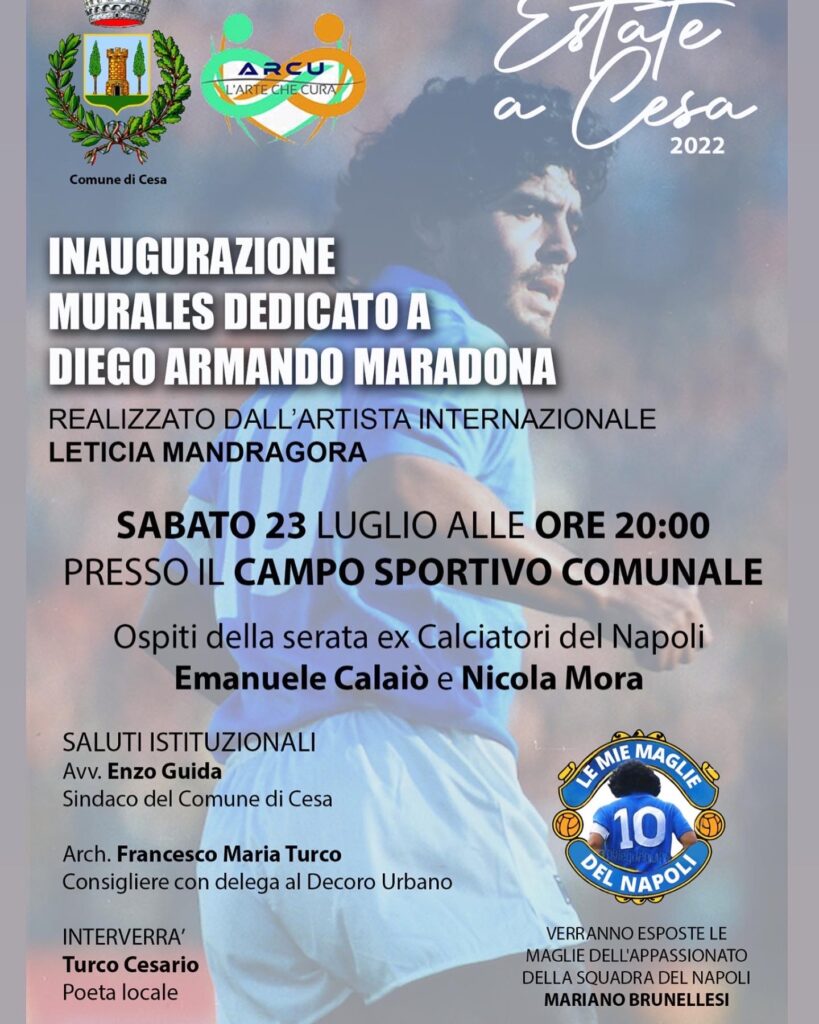 CESA. Sabato sera 23 luglio alle ore 20 si terrà l’inaugurazione del murales dedicato a Diego Armando Maradona. L’opera è…