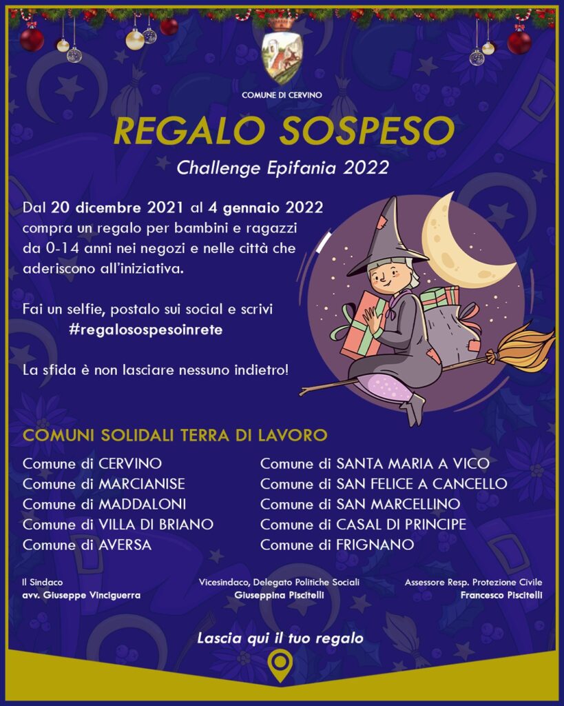 CERVINO. Il Comune di Cervino prende parte all’iniziativa benefica “Regalo Sospeso Epifania 2022”, con cui tutti i cittadini, da…