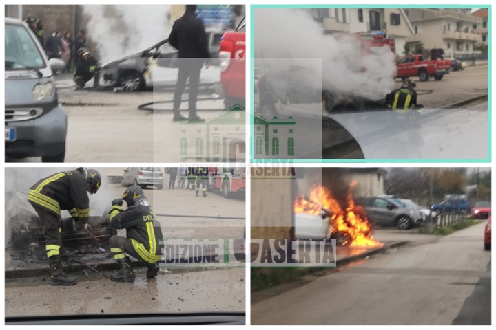 Macerata Campania. Auto in fiamme nella frazione Caturano, nel piazzale di via Salerno davanti la sala biliardo. Il proprietario da…