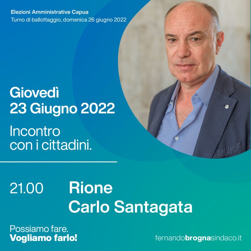Capua. La campagna elettorale è alle battute finali. Ma ancora appuntamenti in agenda del candidato sindaco Fernando Brogna che giovedì…