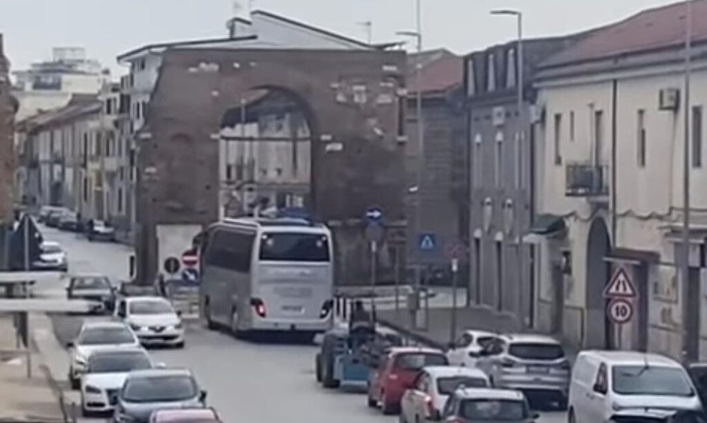 Santa Maria Capua Vetere. Un pullman turistico diretto verso le bellezze storiche della città è rimasto bloccato sotto l’Arco…