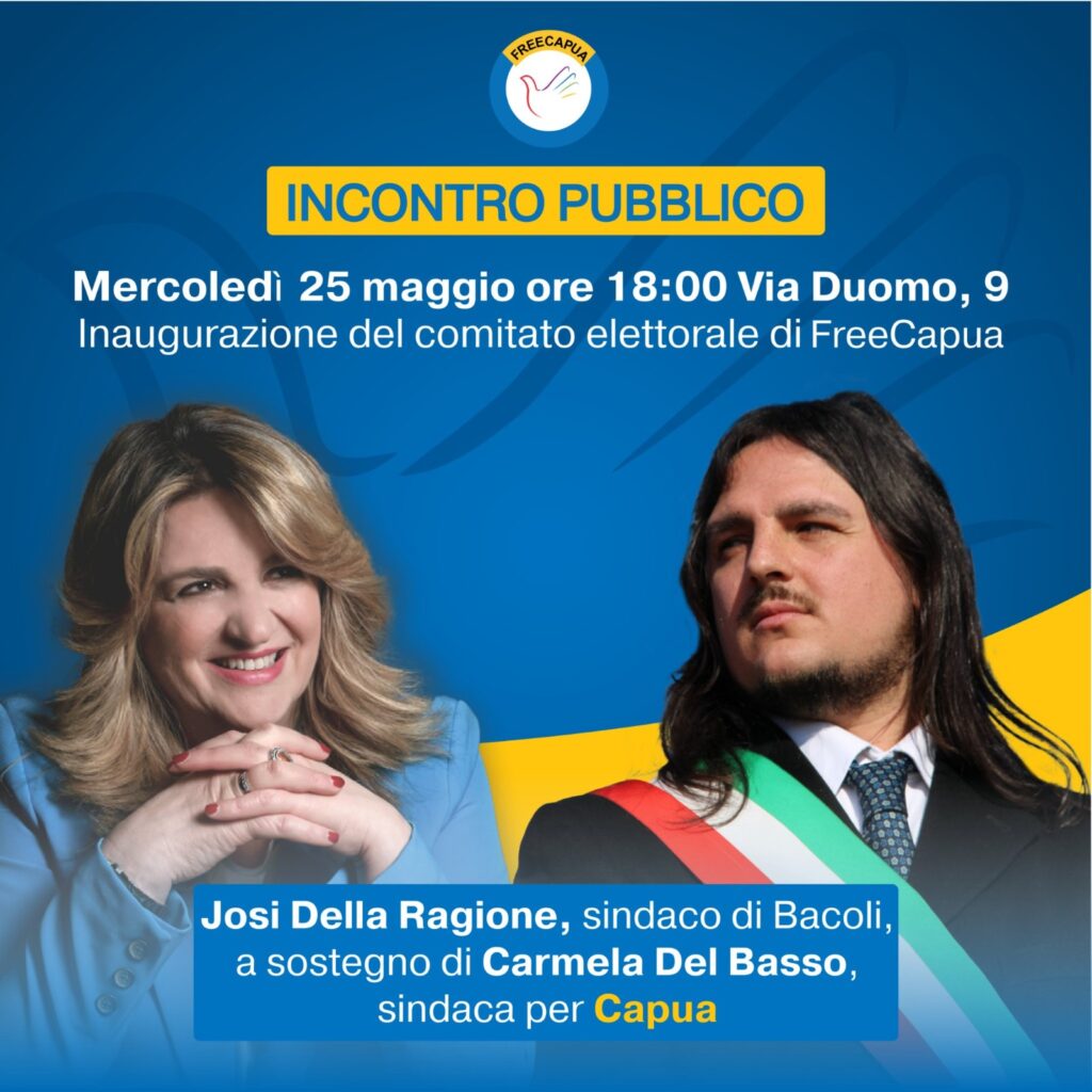 Capua. Mercoledì 25 maggio alle ore 18 arriverà a Capua il sindaco di Bacoli Josi Della Ragione a sostegno della…