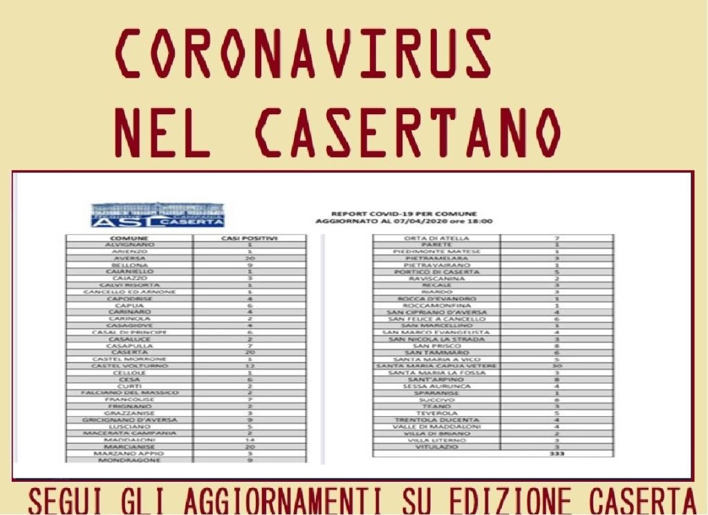L’AGGIORNAMENTO CASERTA. Salgono ancora i casi di positività nel Casertano: l’Asl ne ha comunicati 333, cioè 24 in più…