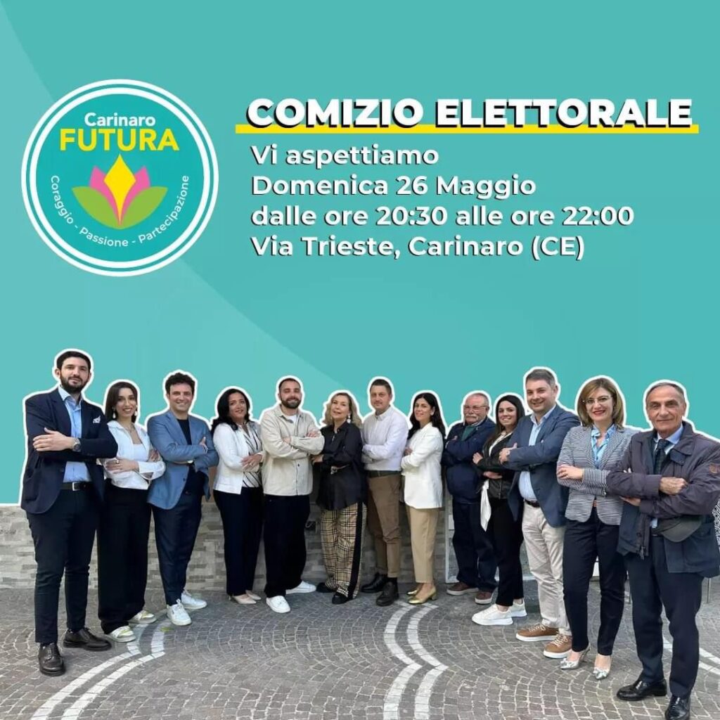 Carinaro. Apertura di campagna elettorale domani, domenica 26 maggio, in via Trieste, per la lista n.2 Carinaro Futura. La candidata…