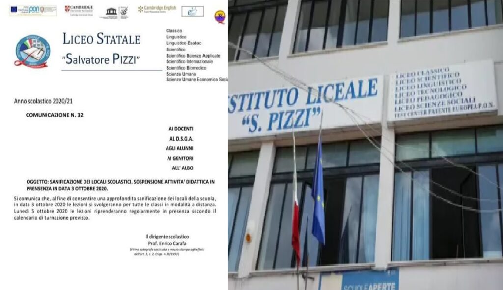 Pizzi chiude per sanificazione, positivi in famiglie di due studenti CAPUA. Continua ad essere monitorata con grande attenzione…