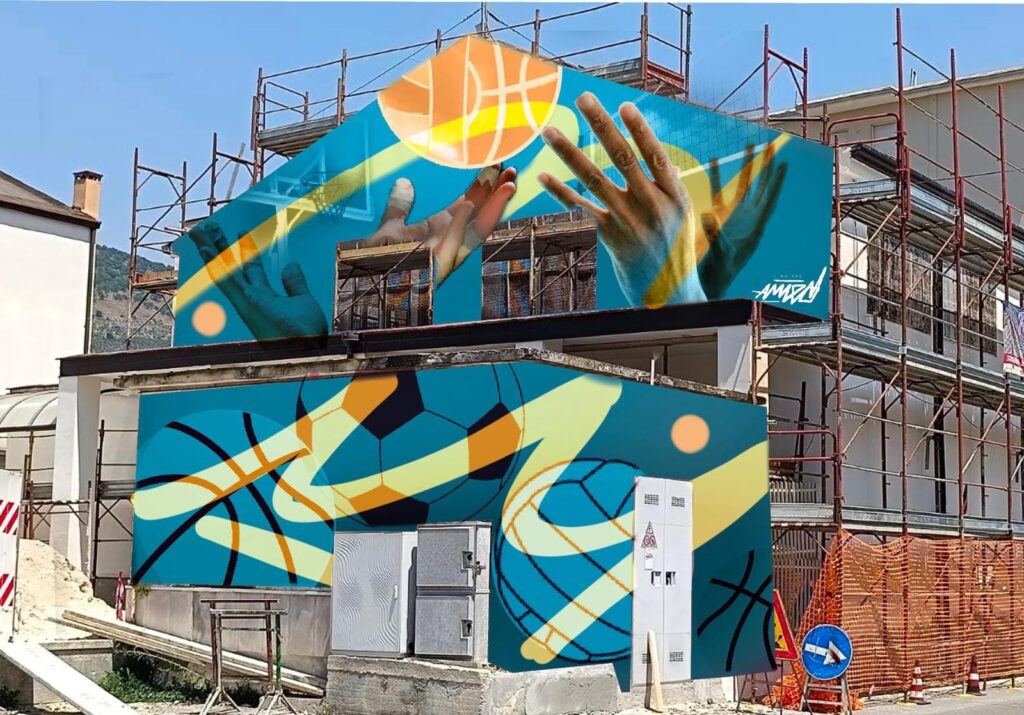 Arienzo. In fase di realizzazione un murale sulla facciata della palestra di via Cappuccini ad Arienzo. A completare i lavori…